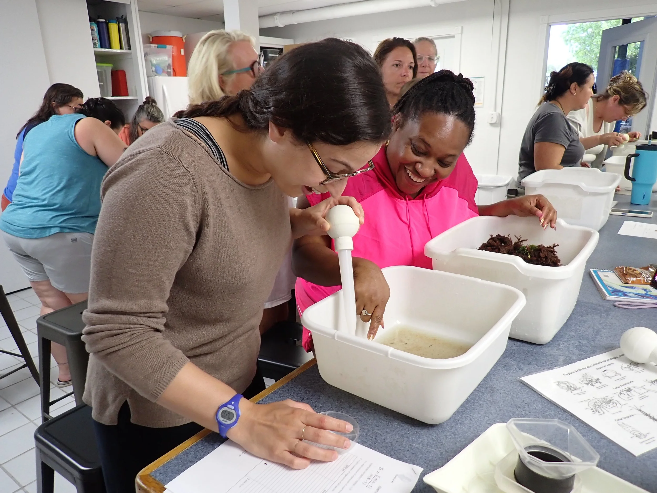 We empower educators to integrate marine science into their curriculum through engaging workshops and practical learning experiences. Our professional development programs provide teachers with the tools and resources they need to bring marine ecosystems into the classroom. Teachers participate in field-based activities, explore marine habitats, and gain knowledge that can be directly applied to enhance student learning about the ocean.